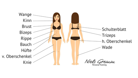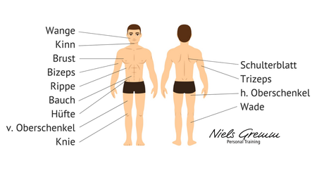 Männer messen dabei die Bauchfalte Brustfalte und Beinfalte. Wenn Sie unsicher sind ob Sie tatsächlich zu dick sind oder nicht kann eine Körperanalyse sehr aufschlussreich sein denn sie zeigt Ihnen. Je dicker die Hautfalten sind desto höher ist der Körperfettanteil.